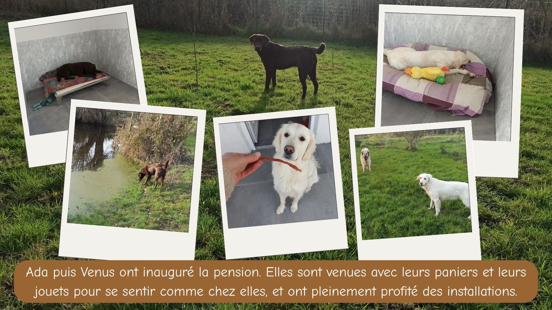 Votre chien sera logé seul pour lui permettre de se reposer sereinement. Il profitera régulièrement des infrastructures, et pourra passer un moment avec des copains si cela lui apporte du plaisir.